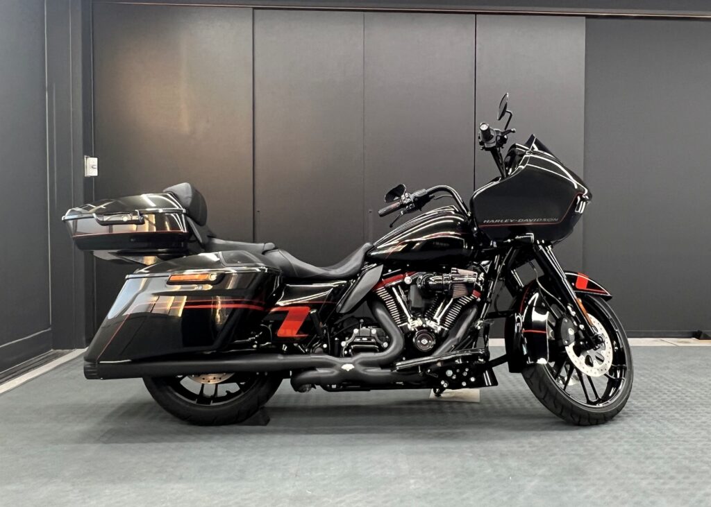 2018年の HARLEY-DAVIDSON CVO FLTRXSE ロードグライド は、ハーレーダビッドソンの最上級ライン「CVO(Custom Vehicle Operations)」に属するプレミアムツーリングモデル。CVOは工場出荷の時点でカスタム仕様となっており、専用の大排気量エンジン、特別塗装、豪華装備が与えられるのが特徴です。