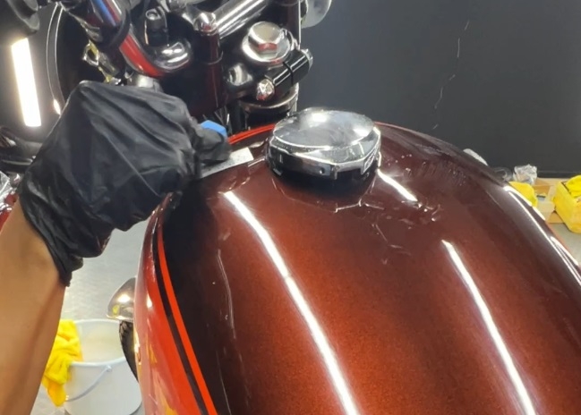 もちろん、ヘッドライト、フレーム、ホイール、シート裏、メーターなどの計器類全て施工いたします。マジベルセラミックRGCの特徴として未塗装樹脂パーツにも施工は可能で、メーター周りやリアフェンダーの樹脂部分も施工が出来、経年劣化による白化も起きないのが特徴です!