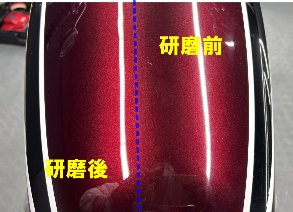 ポリッシングで大きく下地の差が出てきます。塗装を傷めず細かな傷をポリシャー磨きで下地処理をおこないます。この作業で仕上りが大きく変わるほど重要になってきます。