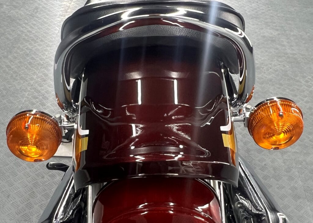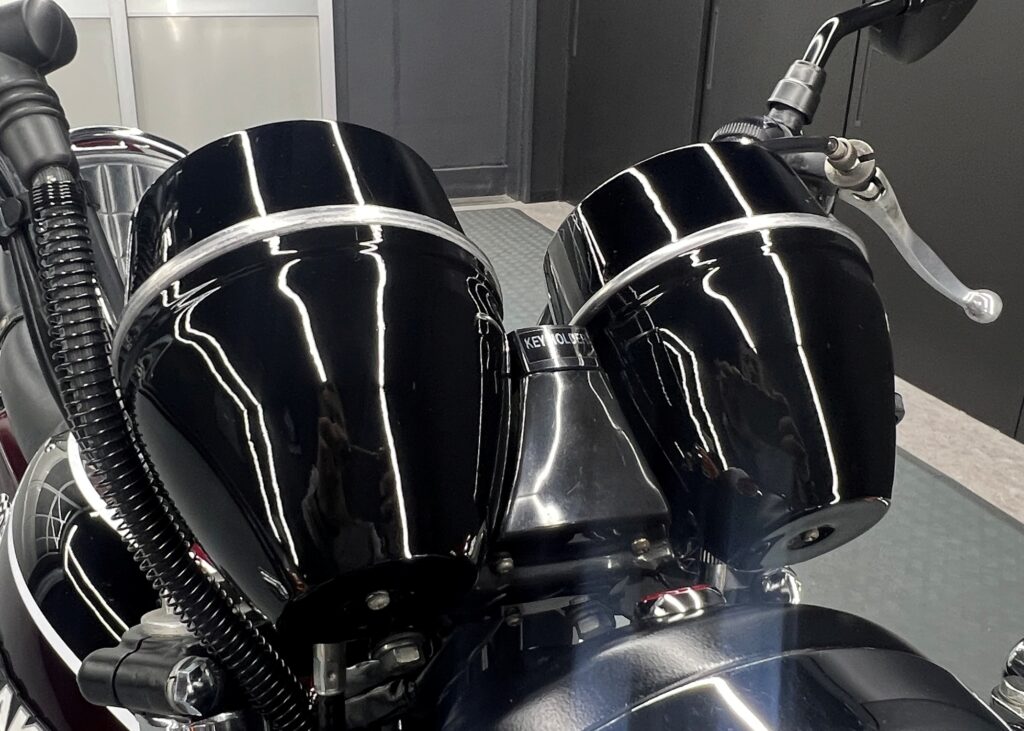 もちろん、ヘッドライト、フレーム、ホイール、シート裏、メーターなどの計器類全て施工いたします。マジベルセラミックRGCの特徴として未塗装樹脂パーツにも施工は可能で、メーター周りやリアフェンダーの樹脂部分も施工が出来、経年劣化による白化しないことも特徴です。