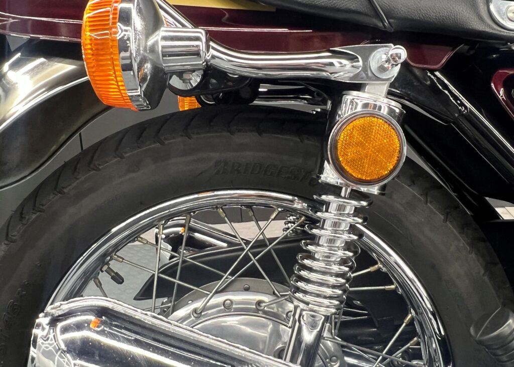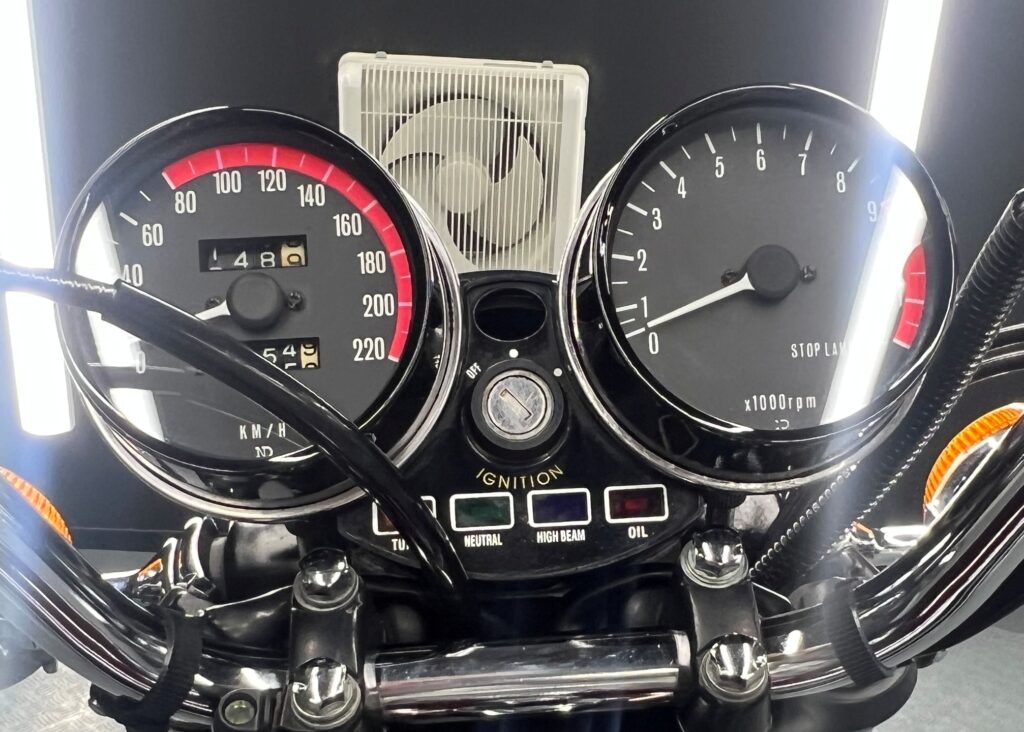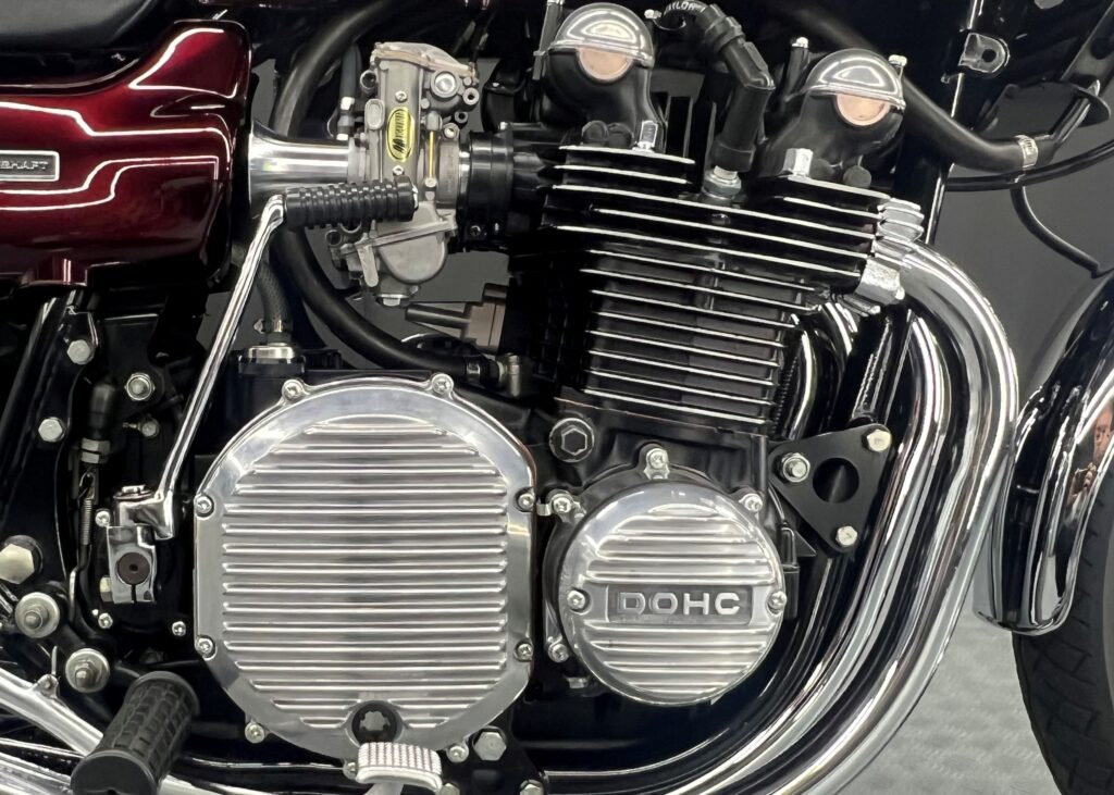 エンジンは空冷4ストロークの並列4気筒DOHCを搭載し、当時としては非常に伸びやかな回転フィールと力強い加速力を持っていました。アイドリング時の重低音の響きから、回転を上げた際のシャープなサウンドへと移り変わる表情は、まさに“旧車ならでは”の魅力です。また、ロングタンクに丸目ヘッドライトというシンプルで美しい外観は、ネイキッドバイクの原点とも言えるデザインで、多くのライダーに「これぞバイク」と感じさせる存在感を持っています。