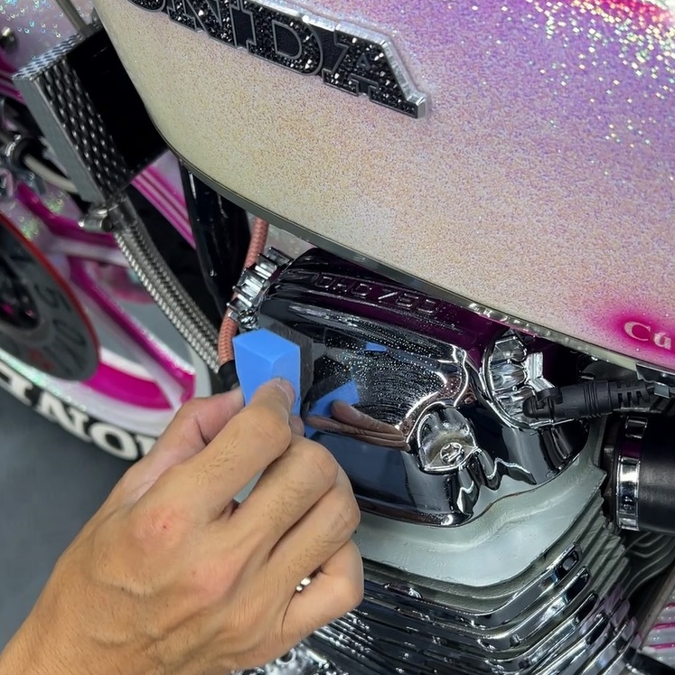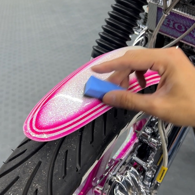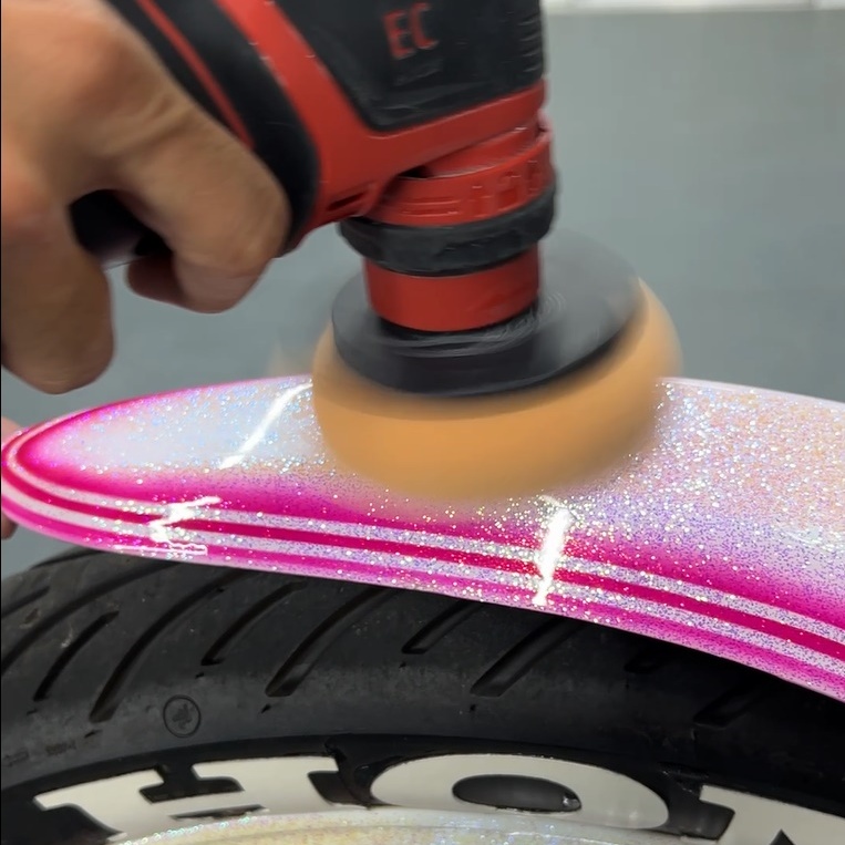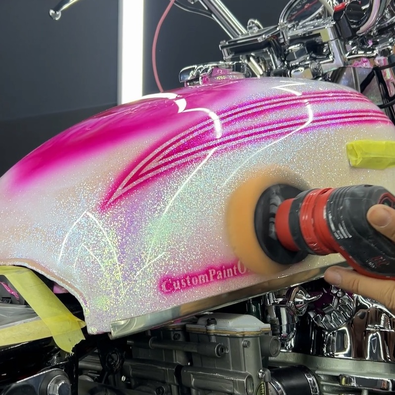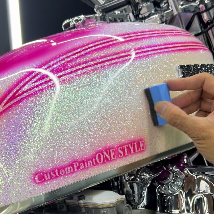 カスタムペイントが施された車両は、その「色の層」をいかにクリアに見せるかが勝負です。