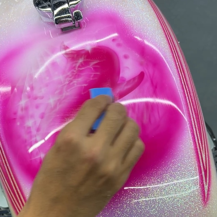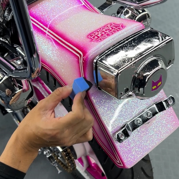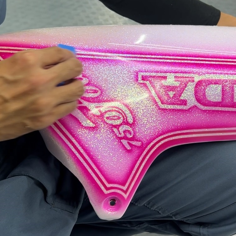 〇タンク・カウル類:パールホワイトはより陶器のような質感へ、ピンクはより鮮烈に。ラメの粒子が一つ一つ際立つような、奥行きのある艶が生まれます。