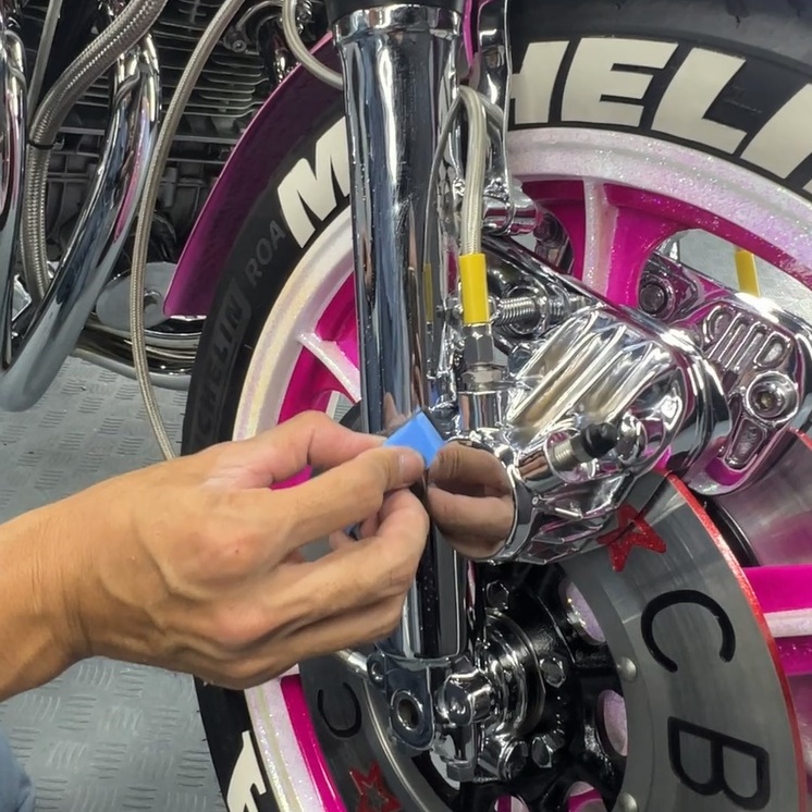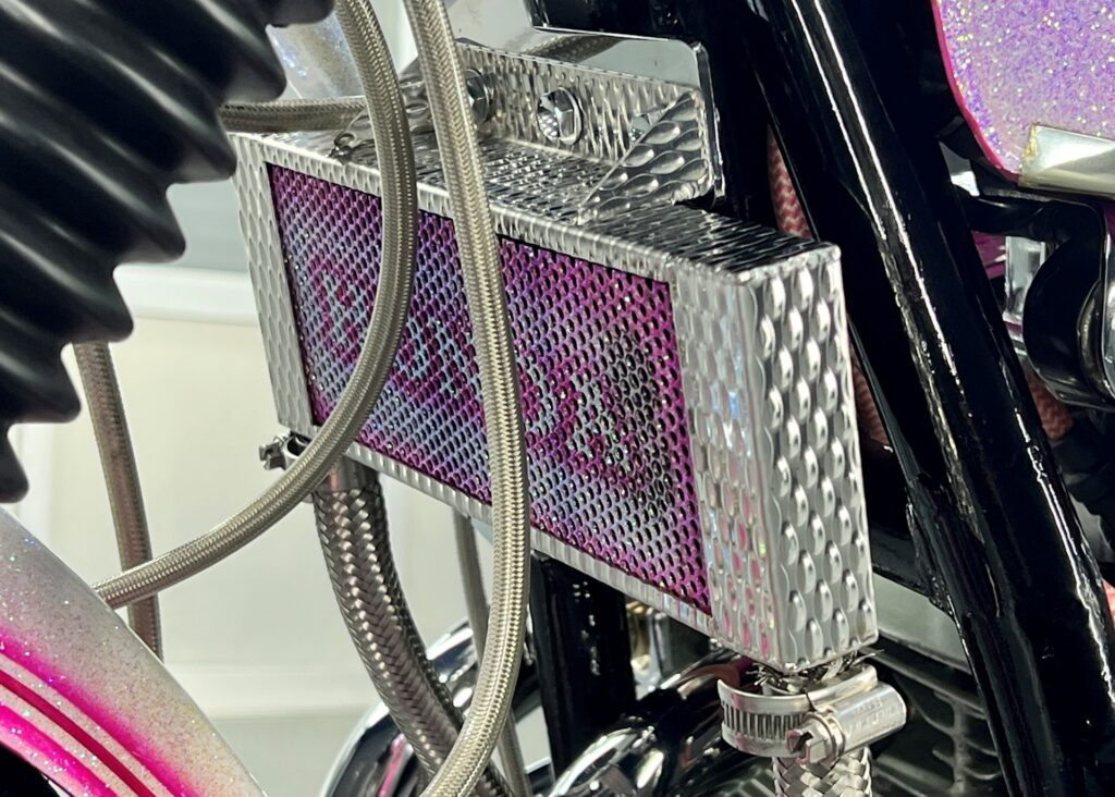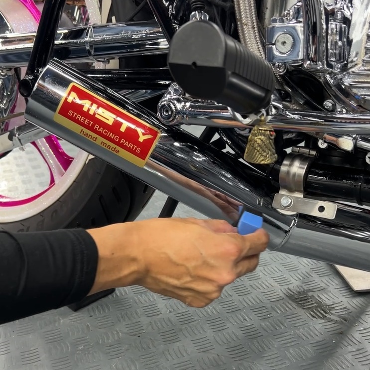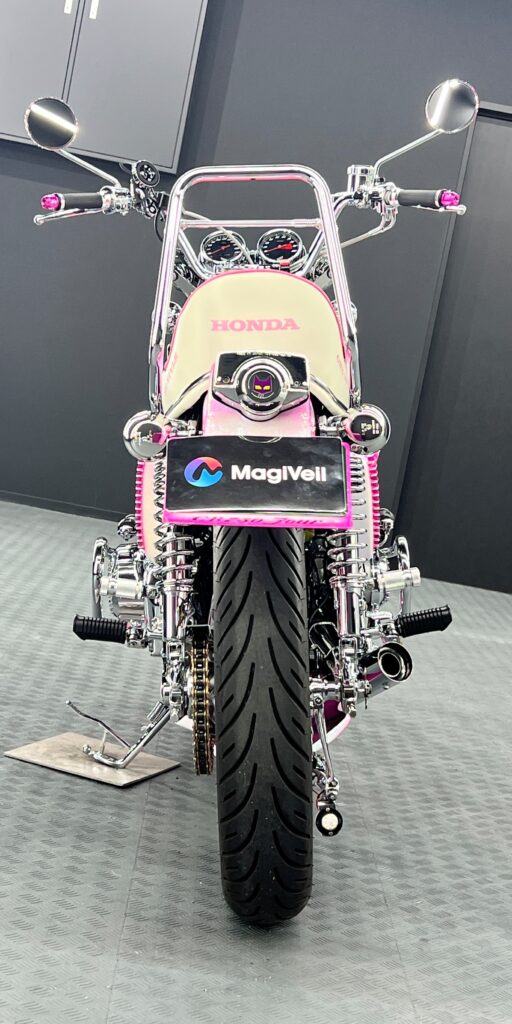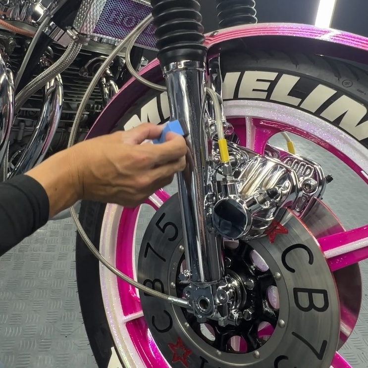 ピンクの彩度は一段階上がり、各部に配されたクロームメッキは鏡のように周囲を映し出します。旧車という「歴史」と、現代の「カスタム」が、マジベルの被膜によって最高の状態で融合しました。